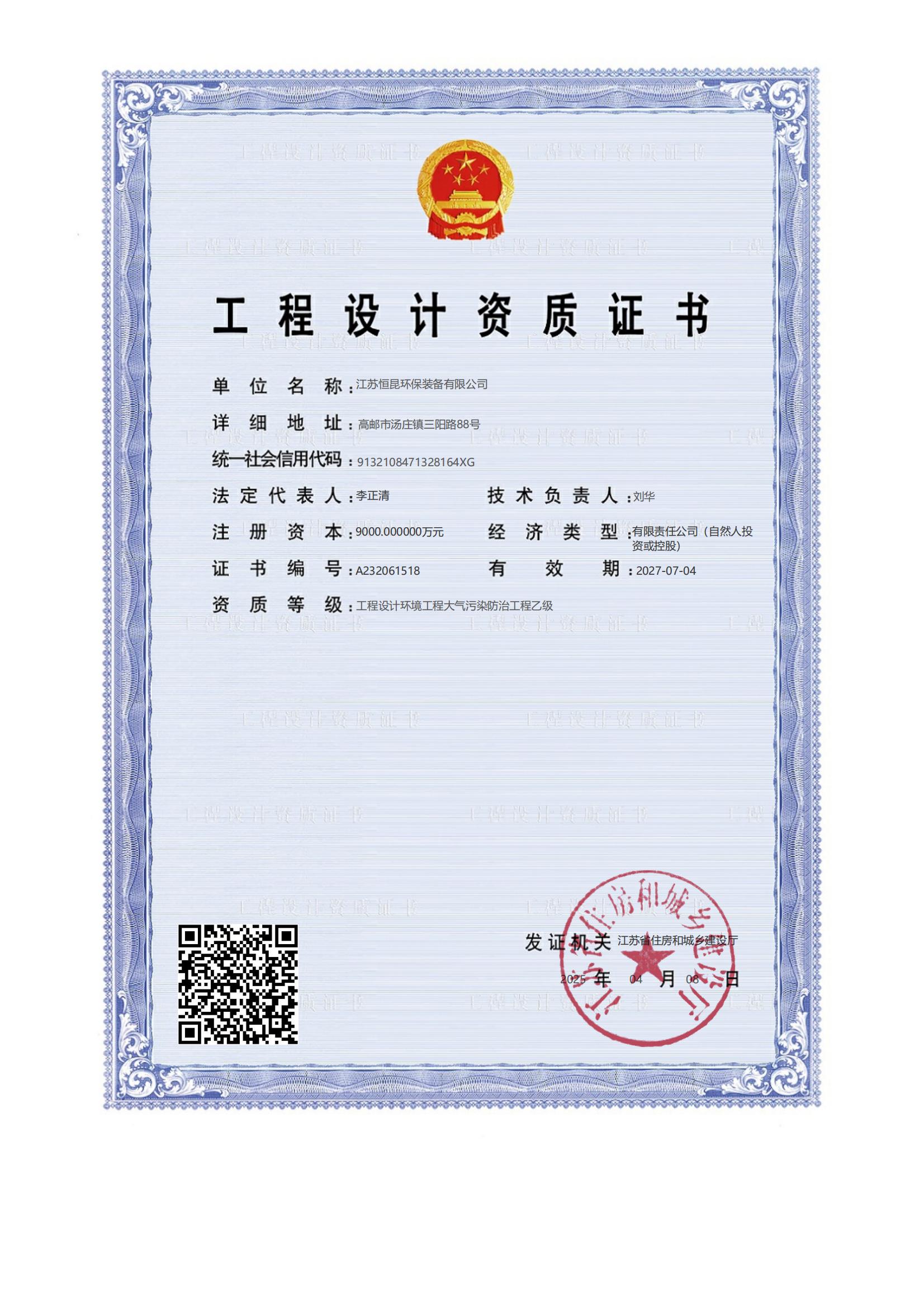 環(huán)境工程設(shè)計(jì)大氣乙級(jí)資質(zhì)