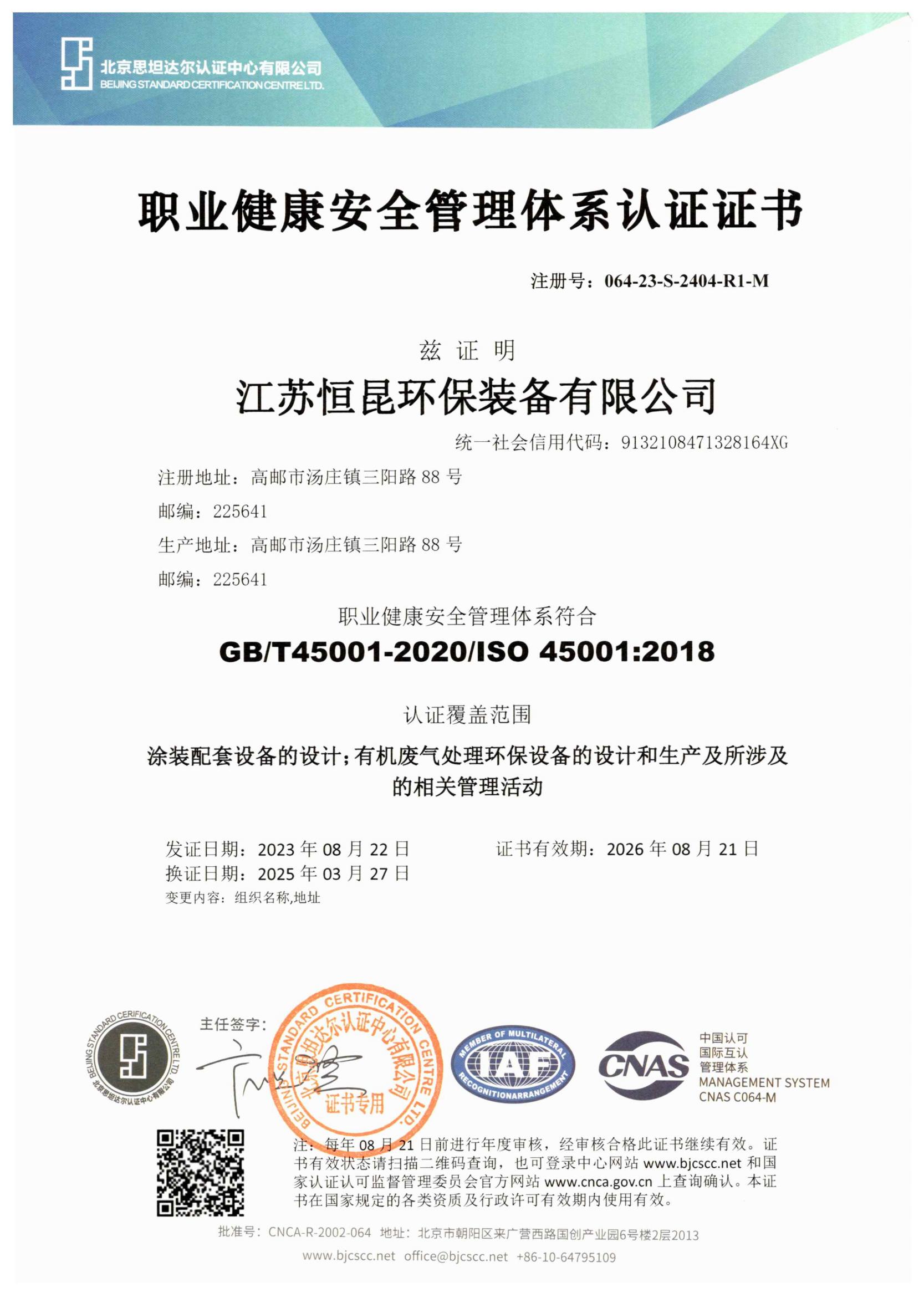 ISO18001職業(yè)健康安全管理體系認(rèn)證證書(shū)